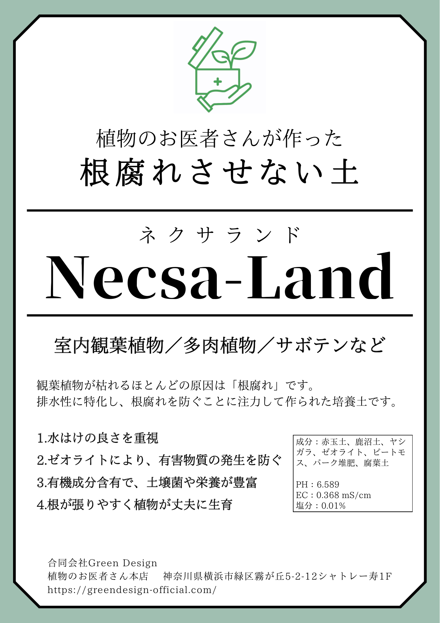 植物のお医者さんがこだわって作っているので、何も混ぜずに Necsa-Land [ネクサランド]ひとつで完結いたします。